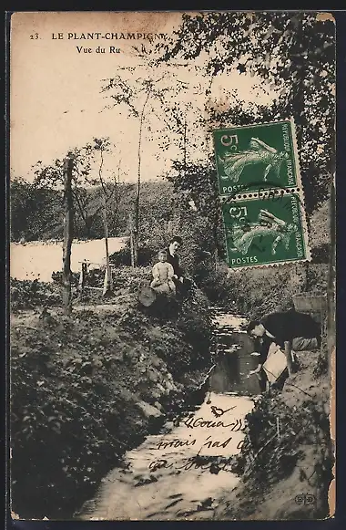 AK Le Plant-Champigny, Vue du Ru avec personnages au bord de l`eau