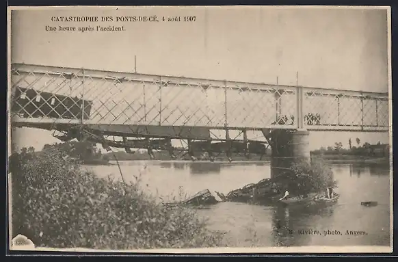AK Le Ponts-de-Cé, Catastrophe 1907, Une heure après l`accident, Eisenbahnkatastrophe