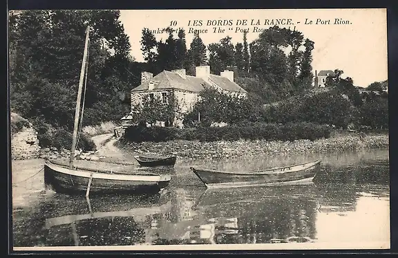 AK Le Port Rion, Les bords de la Rance avec bateaux amarrés devant une maison en pierre