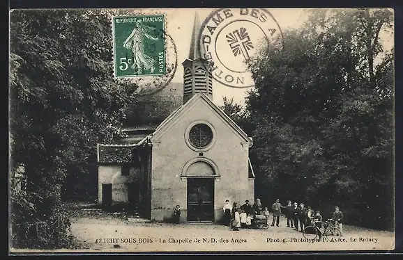 AK Le Raincy, La Chapelle de N.-D. des Anges avec visiteurs devant l`entrée
