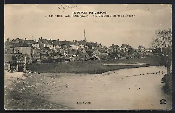 AK Le Theil-sur-Huisne, Vue générale et bords de l`Huisne