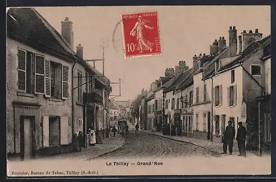AK Le Thillay, Grand`Rue animée avec passants et maisons anciennes