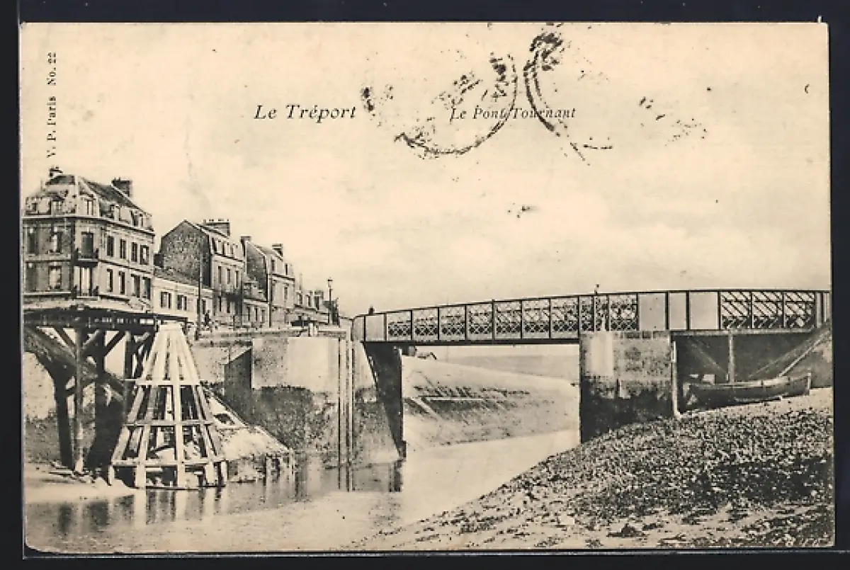 AK Le Tréport, Le Pont tournant et les bâtiments adjacents