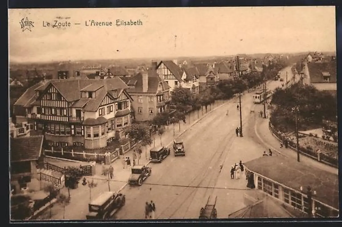 AK Le Zoute, L`Avenue Elisabeth, Strassenbahn