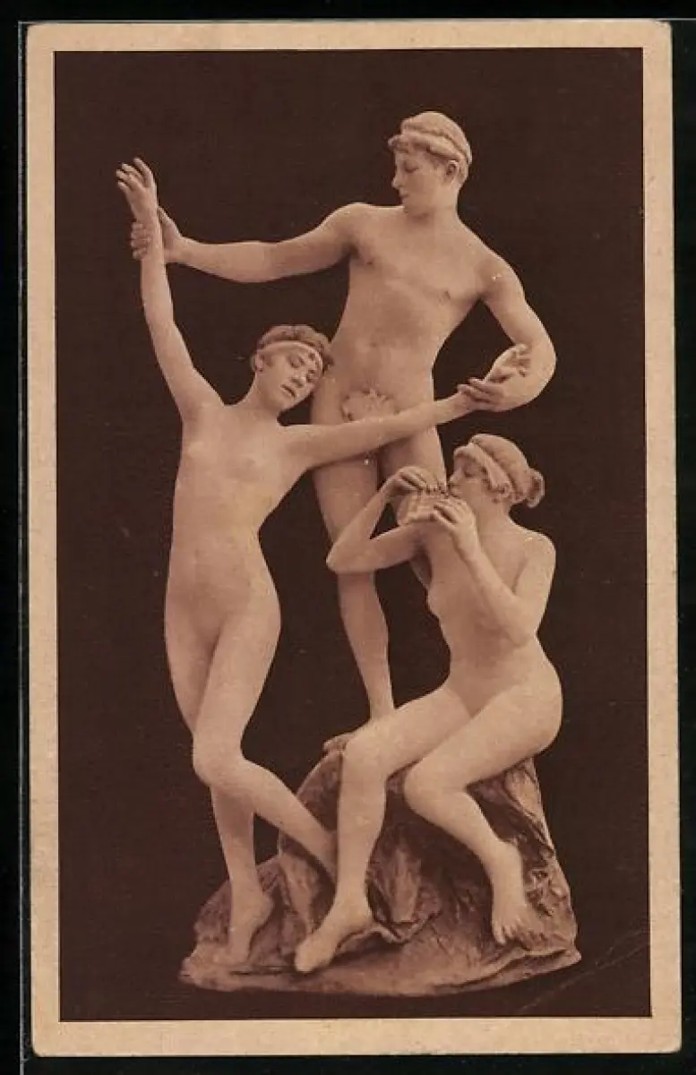 AK Lebender Marmor, Nackte tanzen zum Flötenspiel