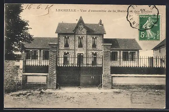 AK Lechelle, Vue d`ensemble de la Mairie et des Écoles