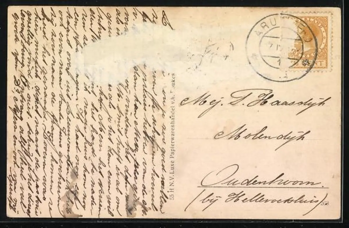 alte Ansichtskarte, gelaufen, Briefmarke entfernt, rückseitig Oberflächenschaden, guter Zustand
