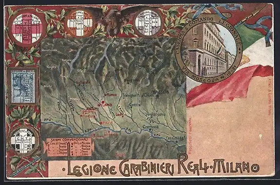 AK Legione Carabinieri Reali Milano, Landkarte, Caserma & Comando Legionale Via Moscova