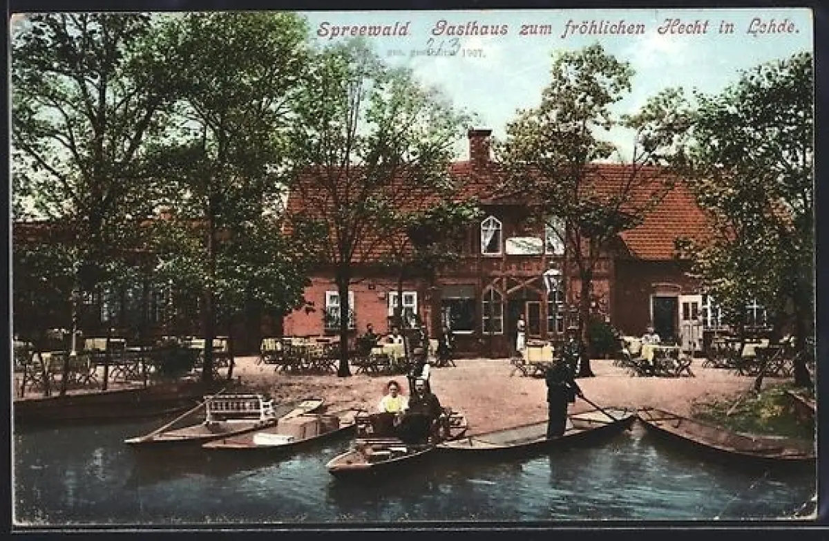 AK Lehde /Spreewald, Gasthaus zum fröhlichen Hecht