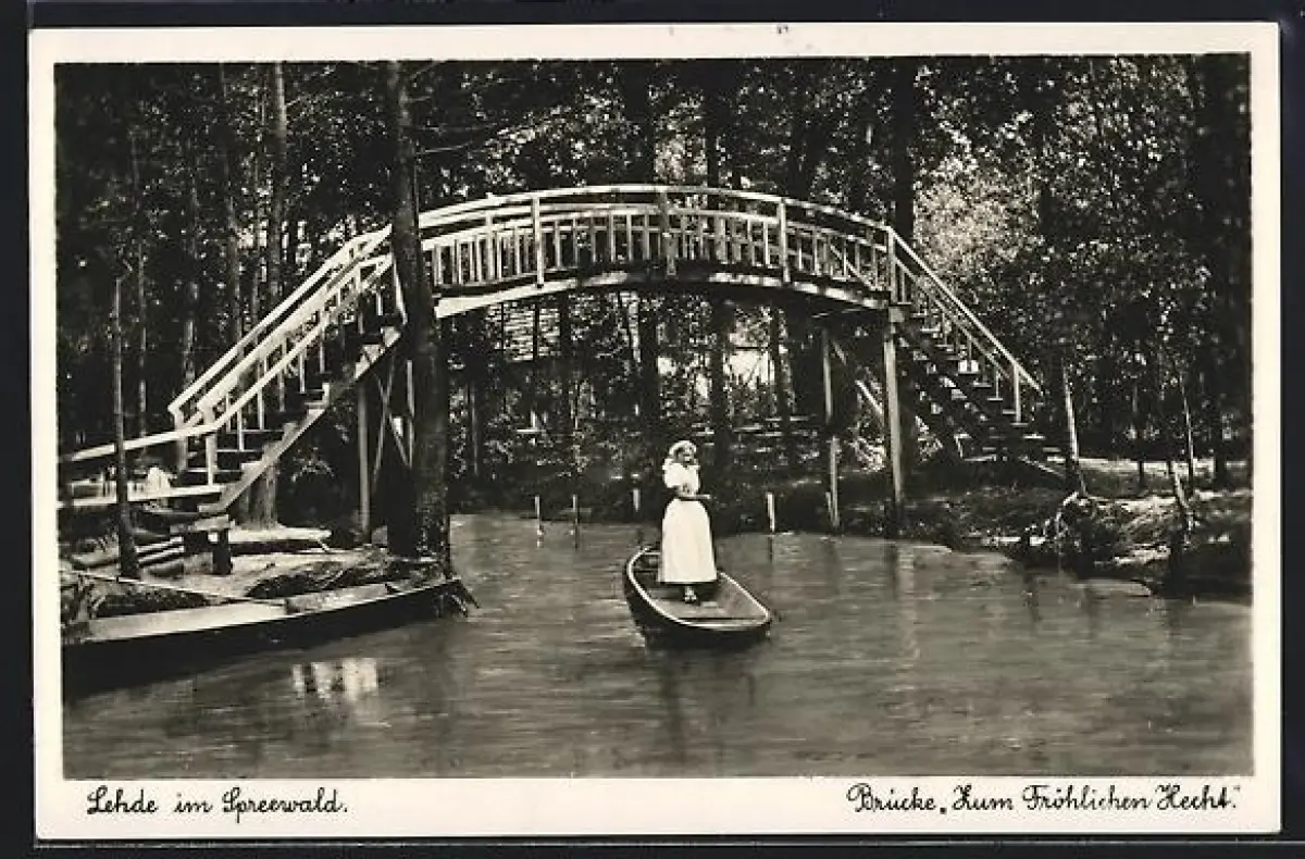 AK Lehde im Spreewald, Brücke Zum Fröhlichen Hecht