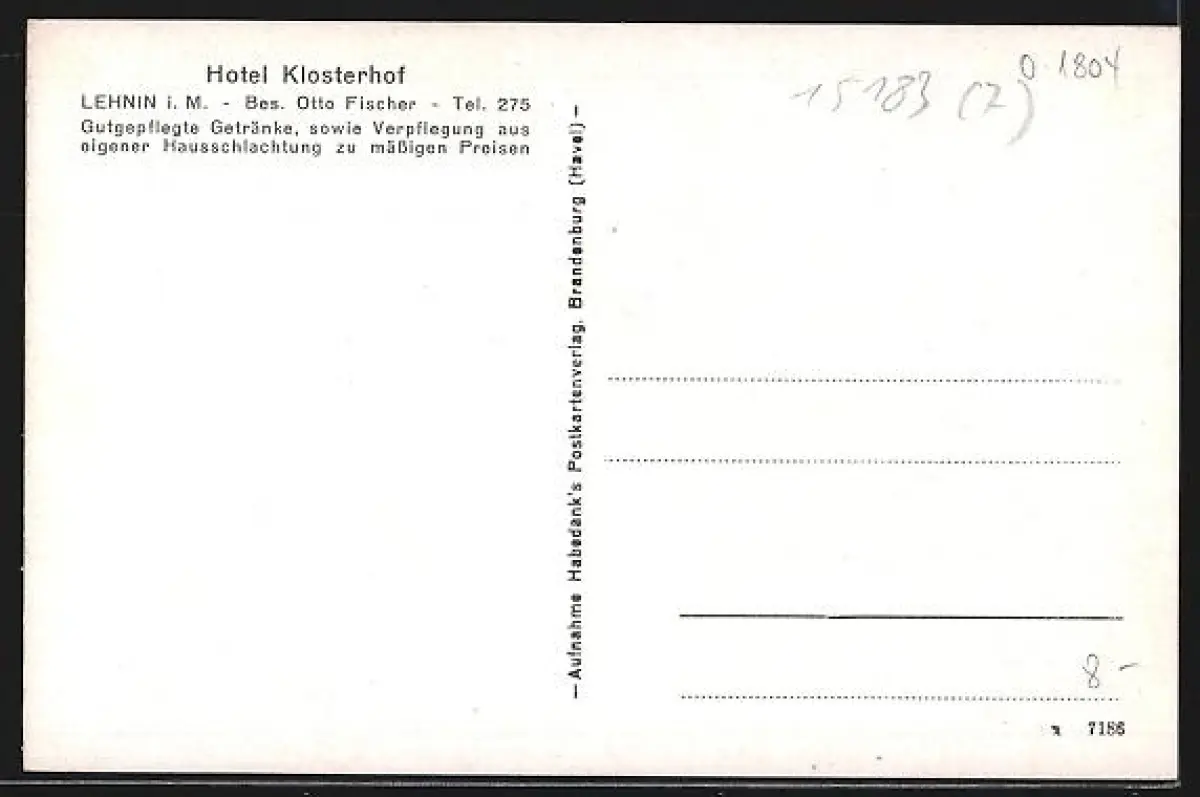 AK Lehnin i. Mark, Hotel Klosterhof, Inh. Otto Fischer