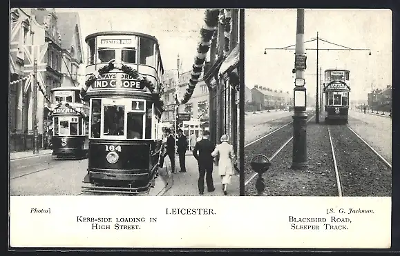AK Leicester, Kerb-side loading in High Street, Blackbird Road, Sleeper Track, Strassenbahn
