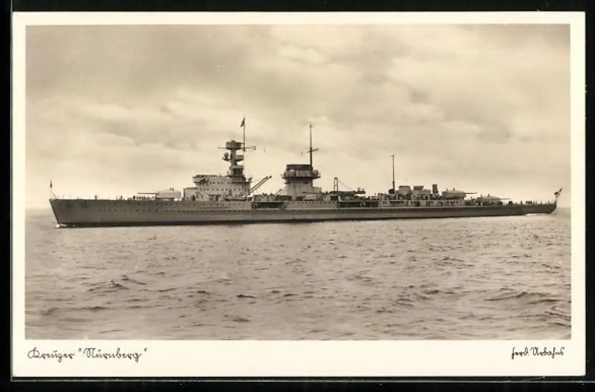 AK Leichter Kreuzer Nürnberg der Kriegsmarine in Fahrt