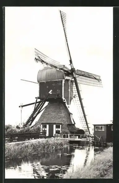 AK Leiderdorp, Ansicht der De Achthovense Molen an einem Bach, Windmühle