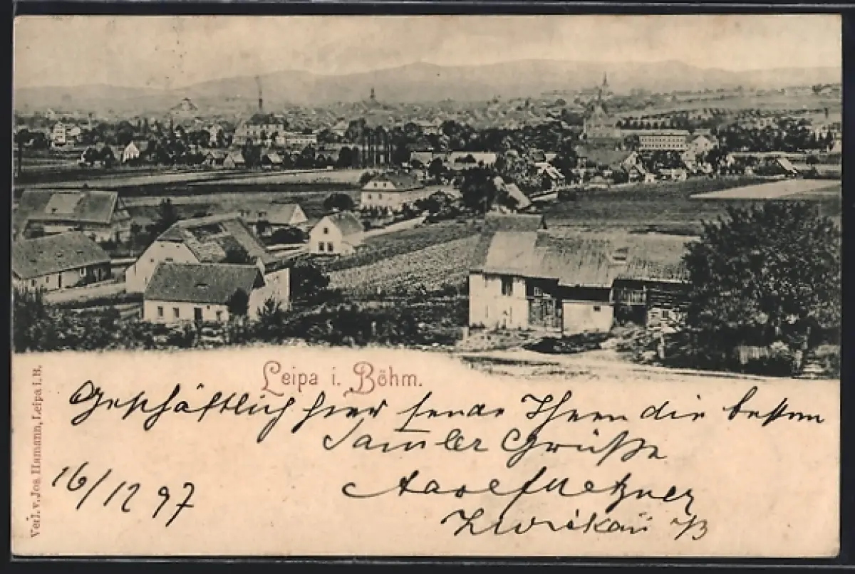 AK Leipa i. Böhm, Teilansicht aus der Vogelschau
