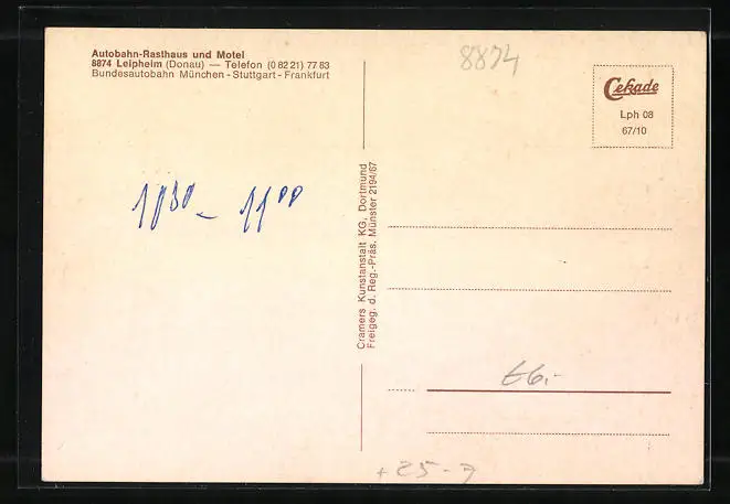 AK Leipheim /Donau, Autobahn-Rasthaus und Motel, an der Autobahn München-Stuttgart-Frankfurt