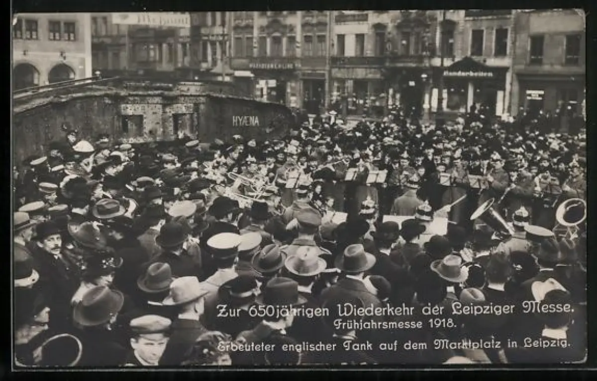 AK Leipzig, 650. Wiederkehr der Leipziger Messe 1918, Erbeuteter englischer Tanz auf dem Marktplatz