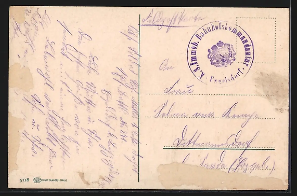 alte Ansichtskarte, gelaufen, rückseitig Oberflächenschaden, guter Zustand