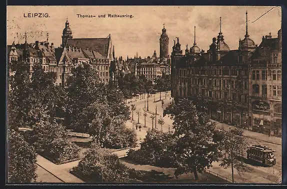 AK Leipzig, Anlagen am Thomasring u. Rathausring, Strassenbahn