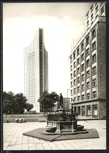 AK Leipzig, Ansicht vom Mägdebrunnen mit dem Universitätsgebäude