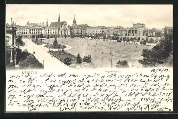 AK Leipzig, Augustusplatz mit Brunnen