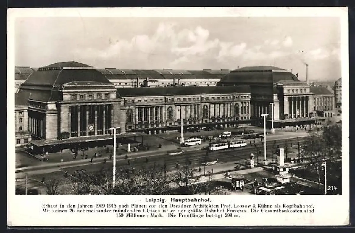 AK Leipzig, Blick auf den Hauptbahnhof, Strassenbahn