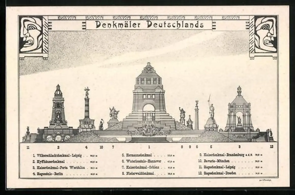 AK Leipzig, Denkmäler Deutschlands in ihren Grössenverhältnissen zum Völkerschlachtdenkmal