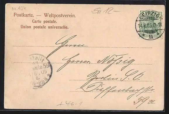 alte Ansichtskarte, gelaufen 1905, Eckknick re. unten, guter Zustand