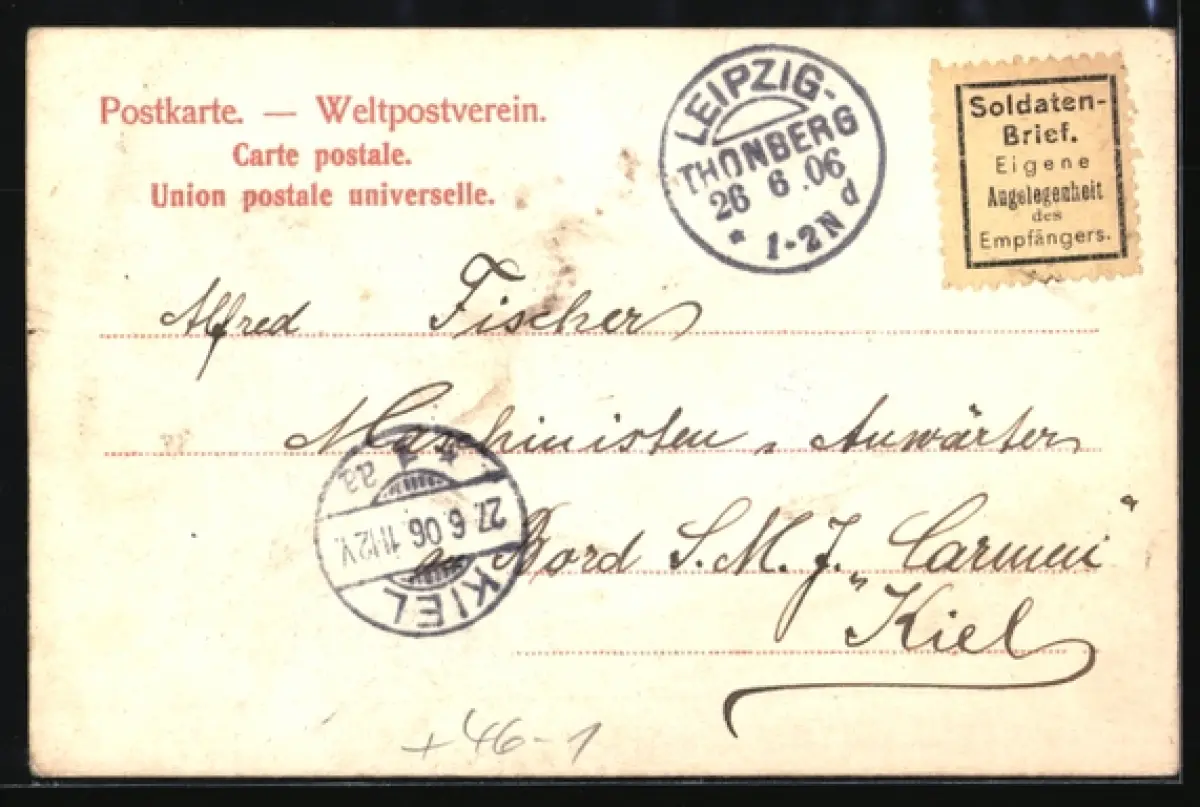 alte Ansichtskarte, gelaufen 1906, Eckknick unten rechts, guter Zustand