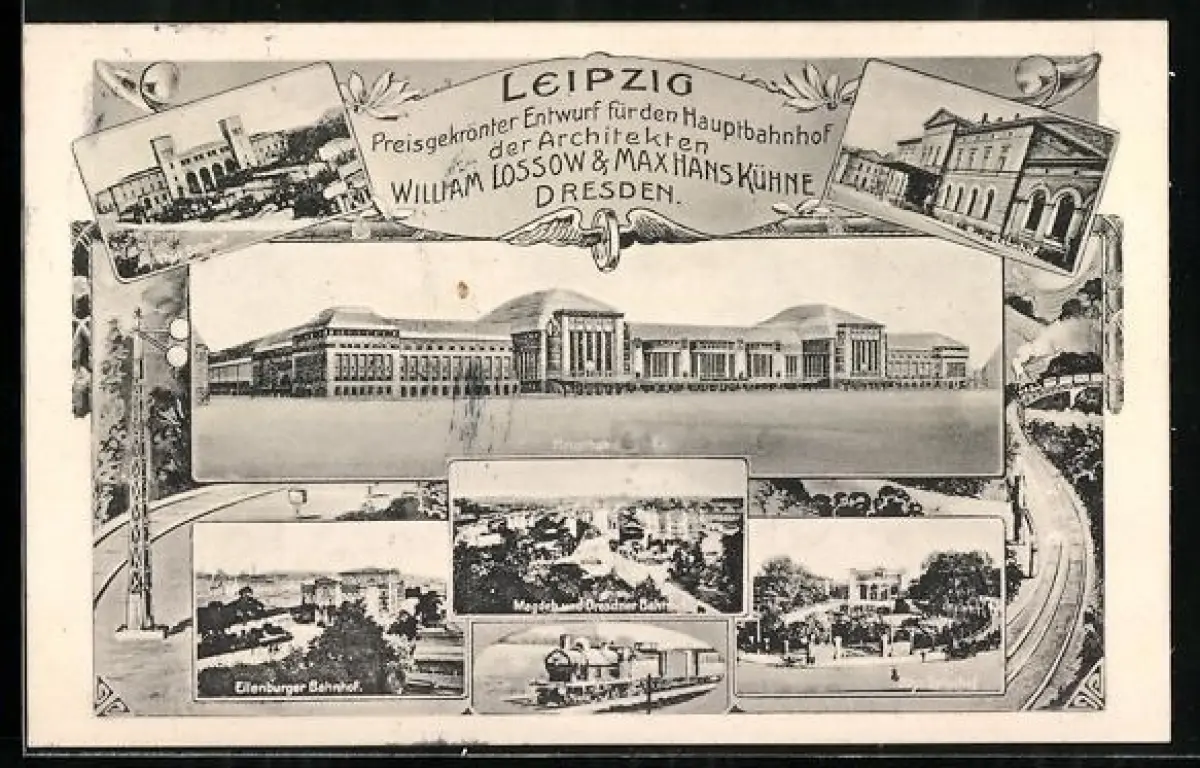 AK Leipzig, Hauptbahnhof, Entwurf von William Losso und Max Hans Kühne