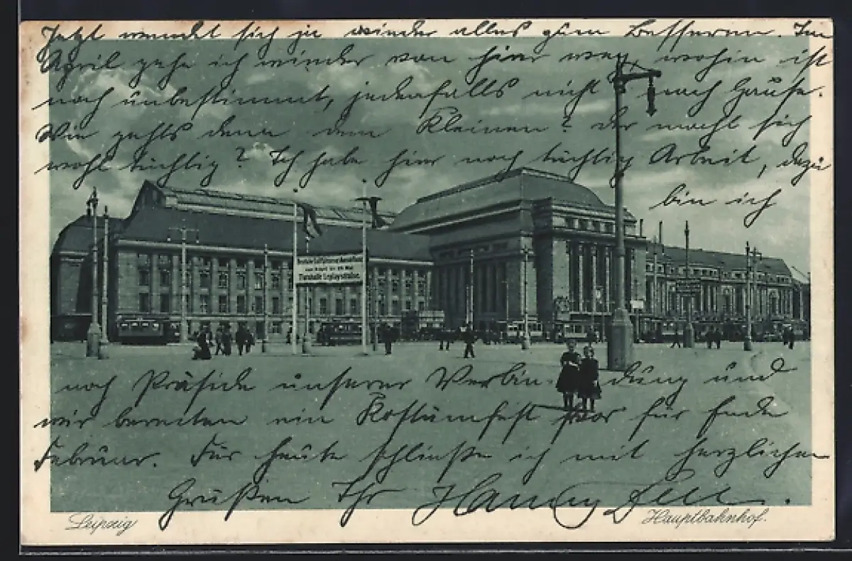 AK Leipzig, Hauptbahnhof mit Strassenbahn