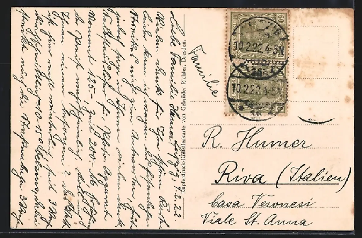 alte Ansichtskarte, gelaufen 1922, Briefmarke entfernt, guter Zustand