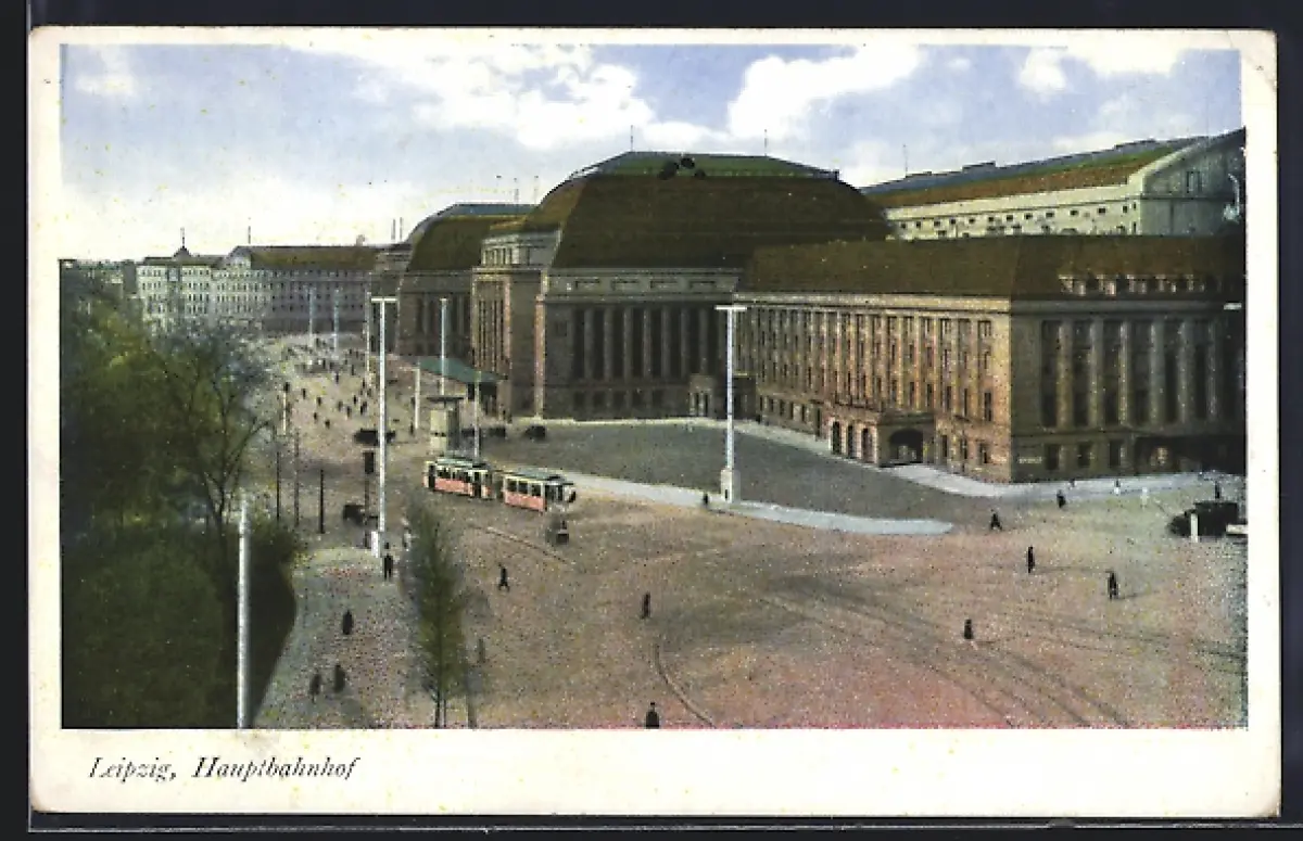 AK Leipzig, Hauptbahnhof mit Strassenbahn