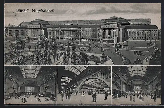 AK Leipzig, Hauptbahnhof mit Strassenbahn, Innenansichten