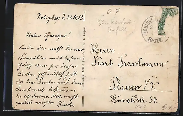 alte Ansichtskarte, gelaufen, Briefmarke entfernt, Eckknick oben re., guter Zustand