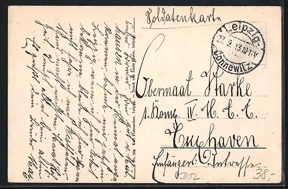 alte Ansichtskarte, gelaufen 1913, rückseitig Oberflächenschaden, guter Zustand