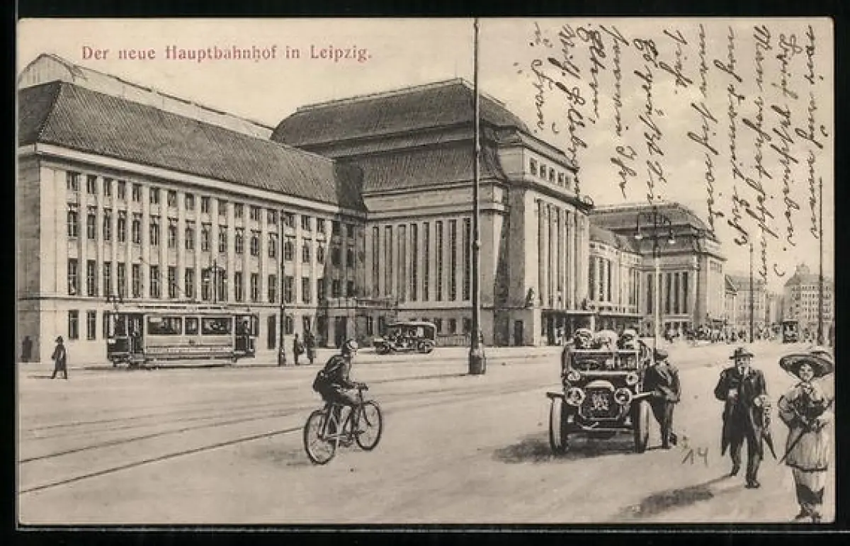 AK Leipzig, Neuer Hauptbahnhof mit Strassenbahn