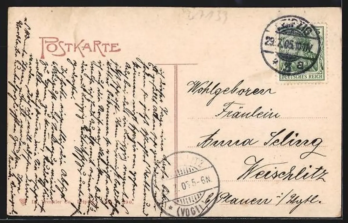alte Ansichtskarte, gelaufen 1905, Stempelspur, guter Zustand