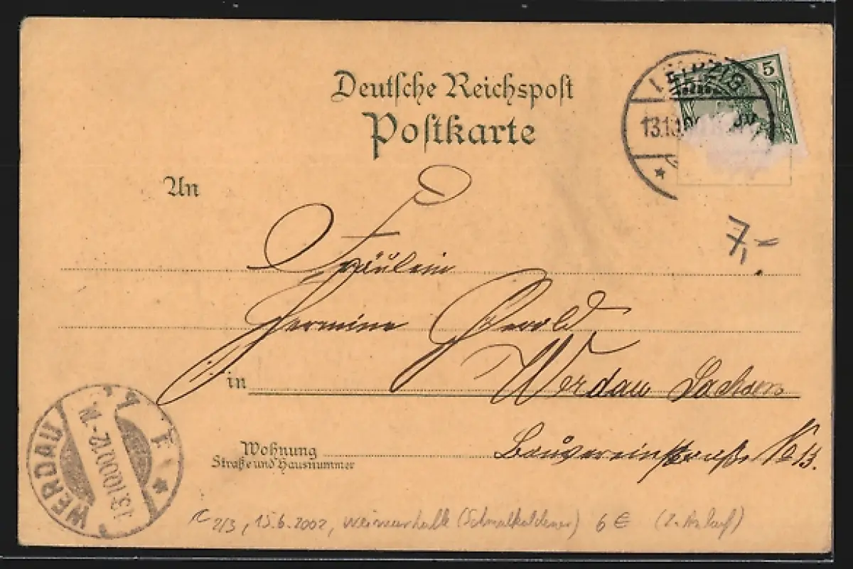 alte Ansichtskarte, gelaufen 1900, Briefmarke entfernt, guter Zustand