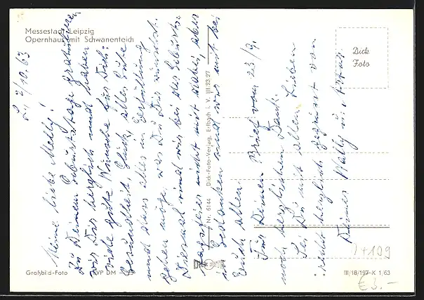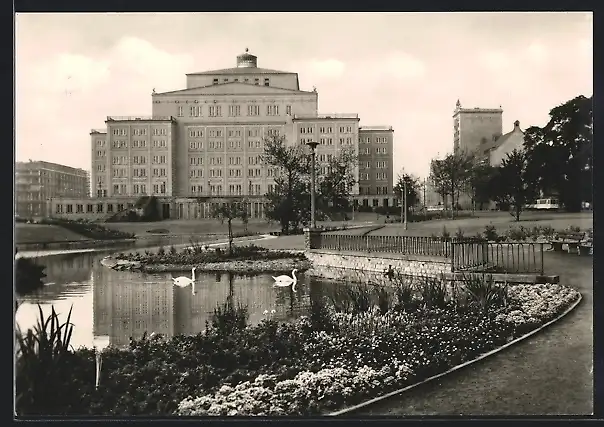 AK Leipzig, Opernhaus mit Schwanenteich