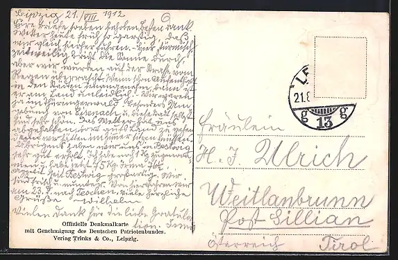 alte Ansichtskarte, gelaufen, Briefmarke entfernt, guter Zustand