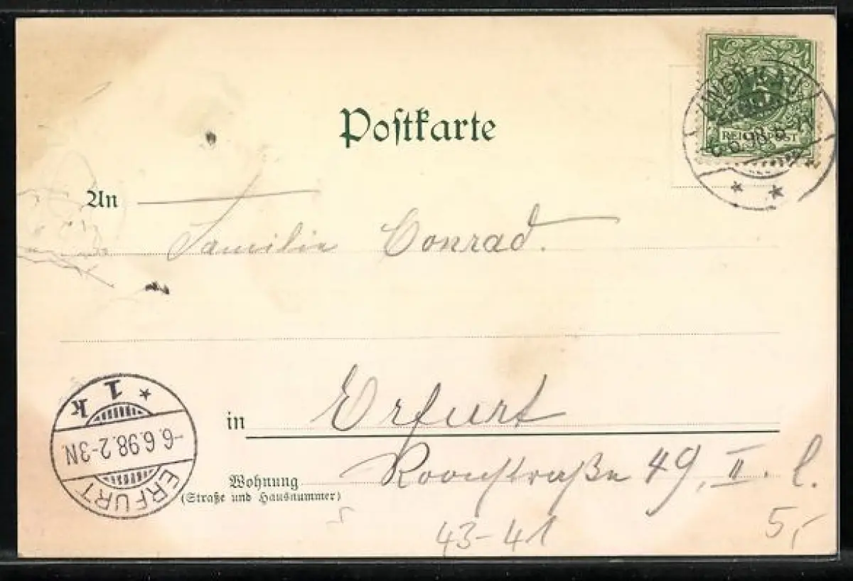 alte Ansichtskarte, gelaufen 1898, guter Zustand