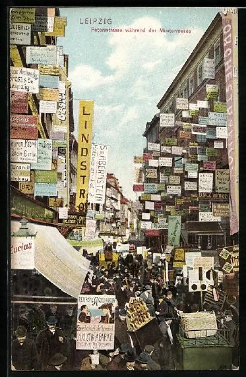 AK Leipzig, Petersstrasse während der Mustermesse, Leipziger Messe