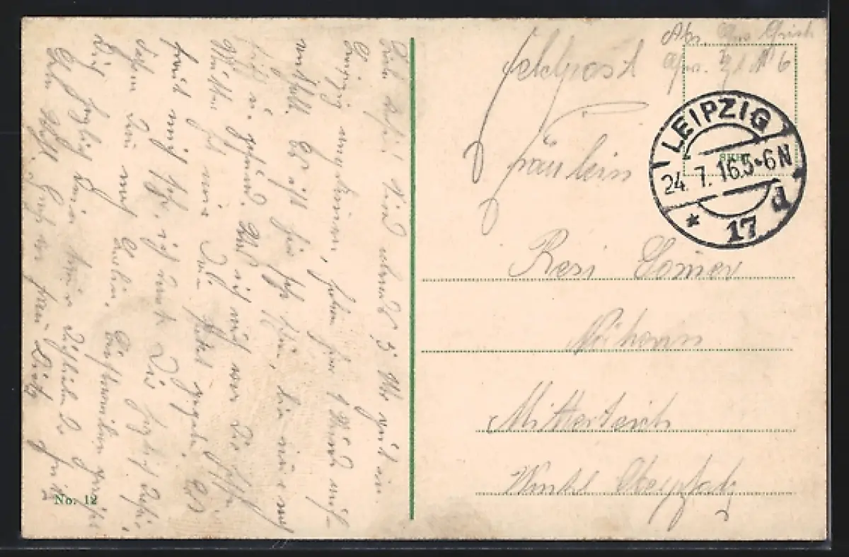 alte Ansichtskarte, gelaufen 1916, Abriebspur oben rechts, Eckknick oben rechts, guter Zustand