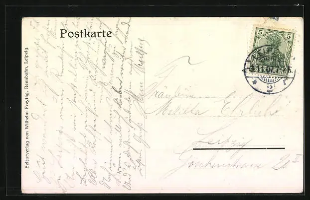 alte Ansichtskarte, gelaufen 1907, Stempelspur, Bugspuren unten re., Ecken bestoßen, guter Zustand
