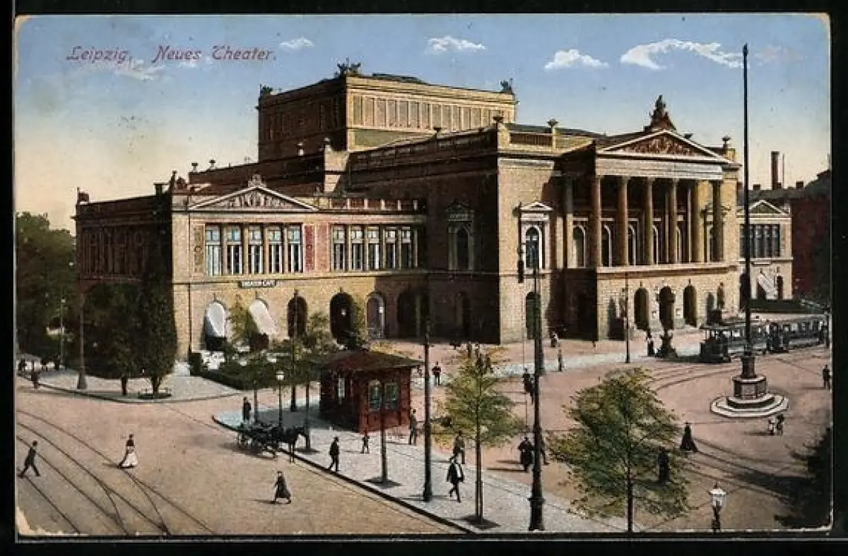 AK Leipzig, Strassenbahn vor dem Neuen Theater