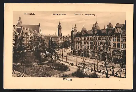 AK Leipzig, Thomaskirche, Neues Rathaus, Thomas- und Rathausring