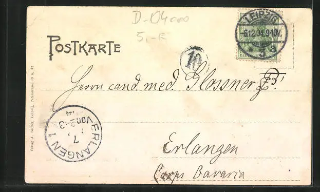 gelaufen 1904, Eckknick re. oben, Stempelspur, guter Zustand