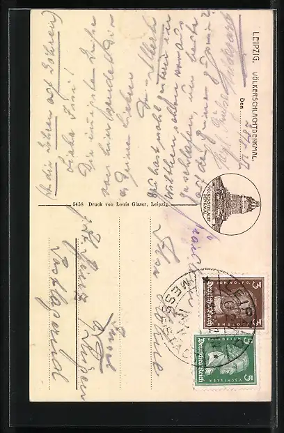Personenbezogene Daten auf der Rückseite der Karte wurden durch blauen Textmarker unkenntlich gemacht. Die blauen Stellen sind auf die Vorderseite durchgeweicht und wirken sich negativ auf das Postkartenfoto aus