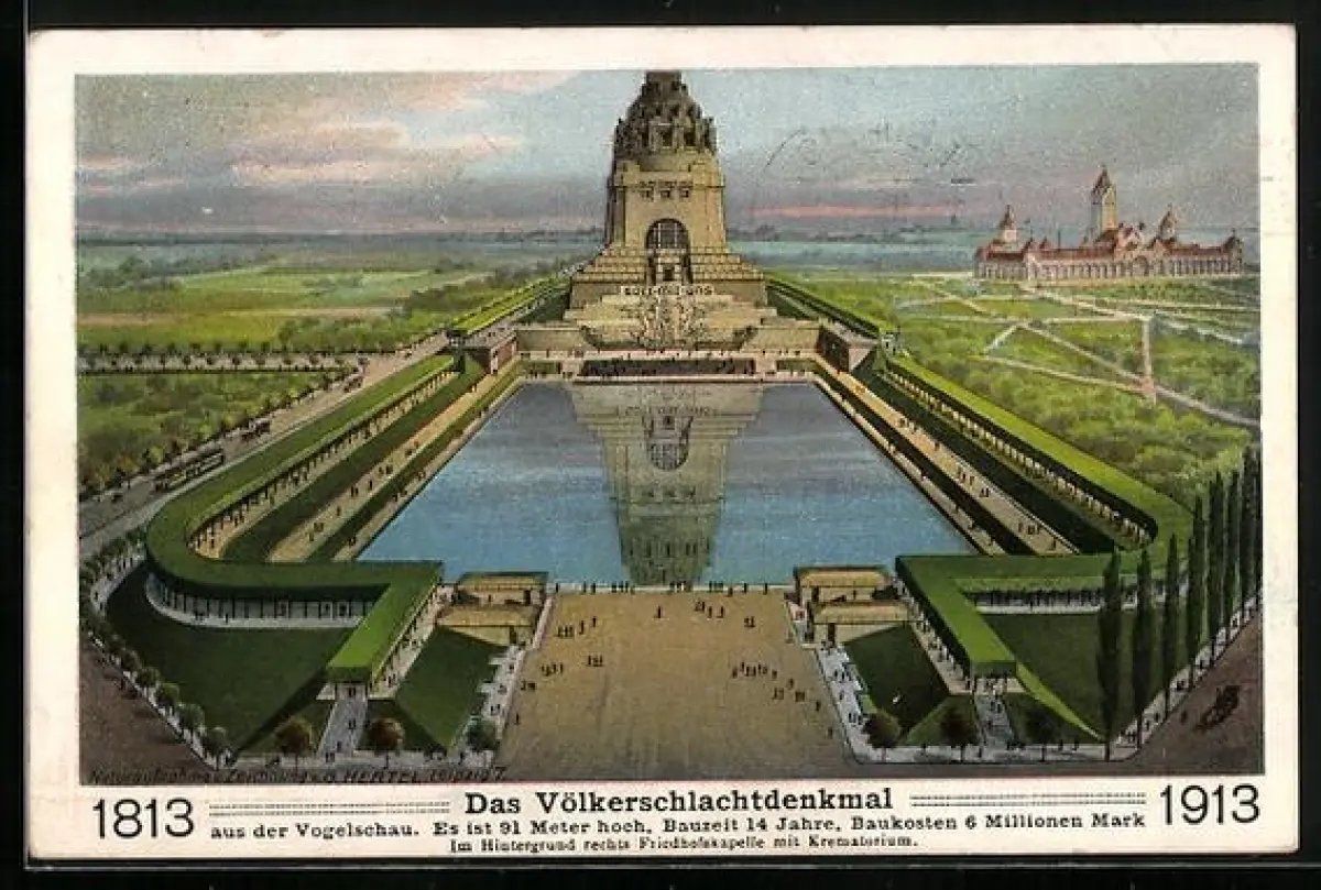 AK Leipzig, Völkerschlachtdenkmal 1913 aus der Vogelschau